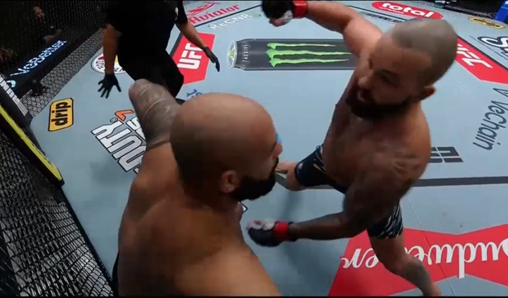 O duelo seguiu bastante equilibrado no terceiro e último assalto, com ambos mostrando muita técnica e golpes precisos na trocação, empolgando o público no UFC Apex. No fim, depois de três rounds disputados, a vitória na decisão unânime ficou com Raoni Barcelos, que aos 38 anos de idade, chega à quarta vitória seguida no Ultimate.