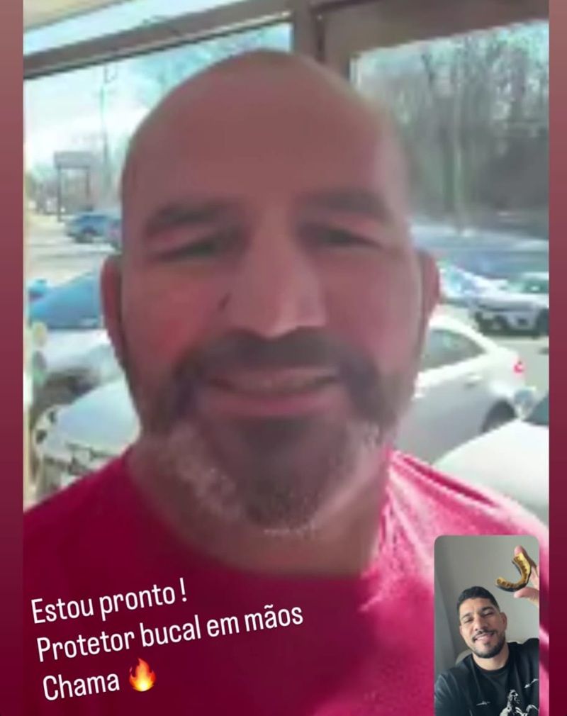 Em seus “stories” no Instagram, Poatan compartilhou uma imagem de uma chamada de vídeo com Glover Teixeira, seu treinador de longa data e peça-chave em sua trajetória no MMA. No registro, feito enquanto o campeão viaja pelo Brasil, Alex aparece exibindo o protetor bucal.